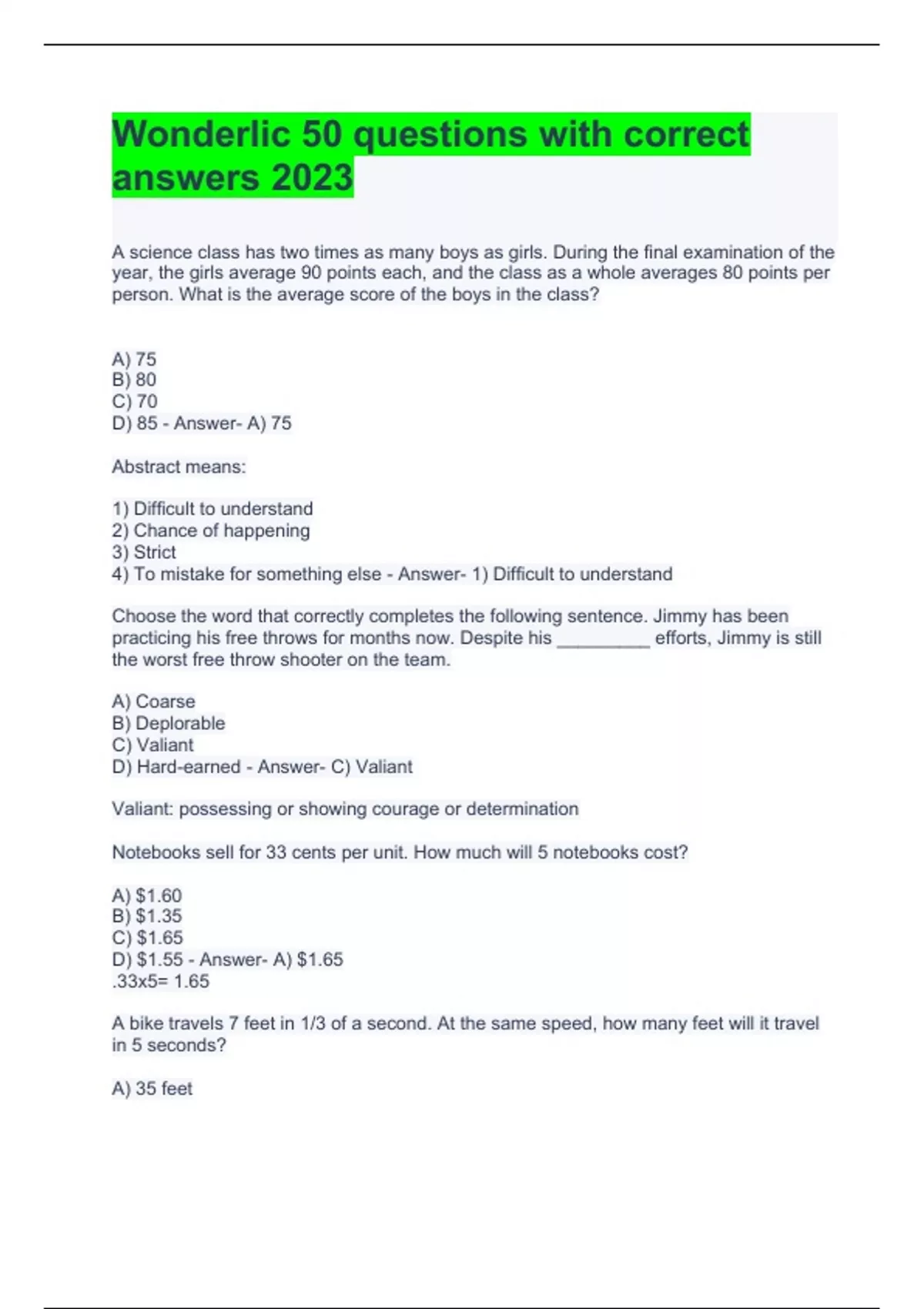 Wonderlic Practice Tests Questions And With Correct Answers 2024.